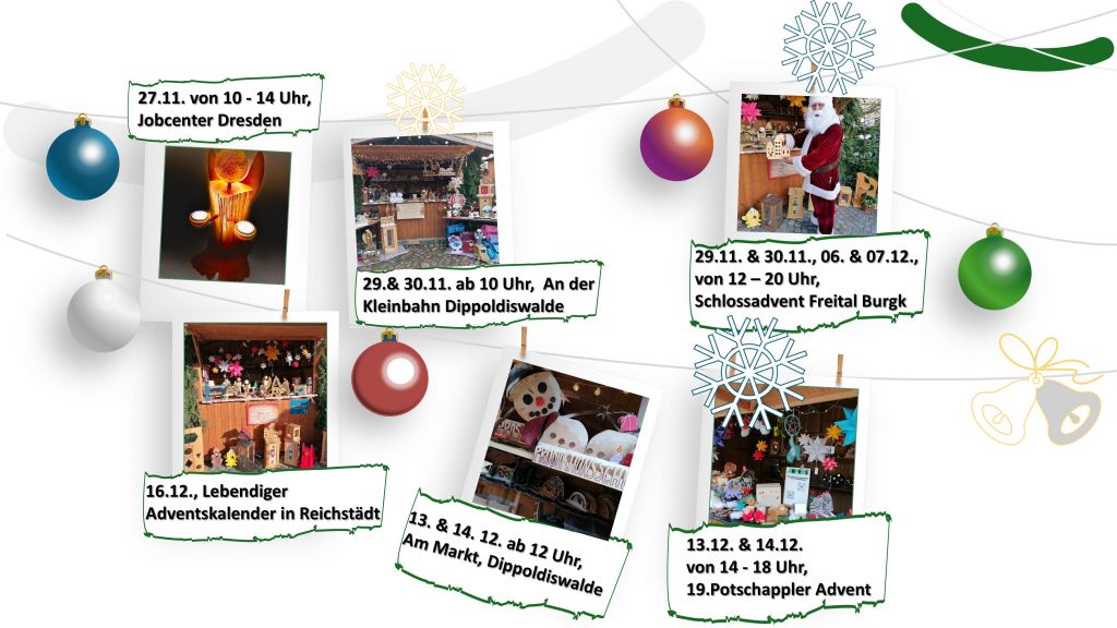 Wir freuen uns auf Euren Besuch. Schaut gern zu den Terminen an unseren Marktständen zur Vorweihnachtszeit vorbei.
