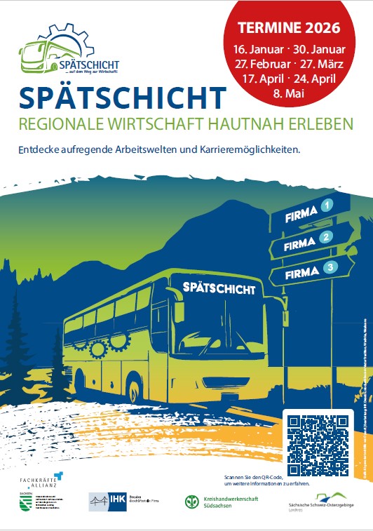 Am 27.02.2026 ist „Spätschicht- Auf dem Weg zur Wirtschaft“. Mit dabei sind wir am Standort Dippoldiswalde.